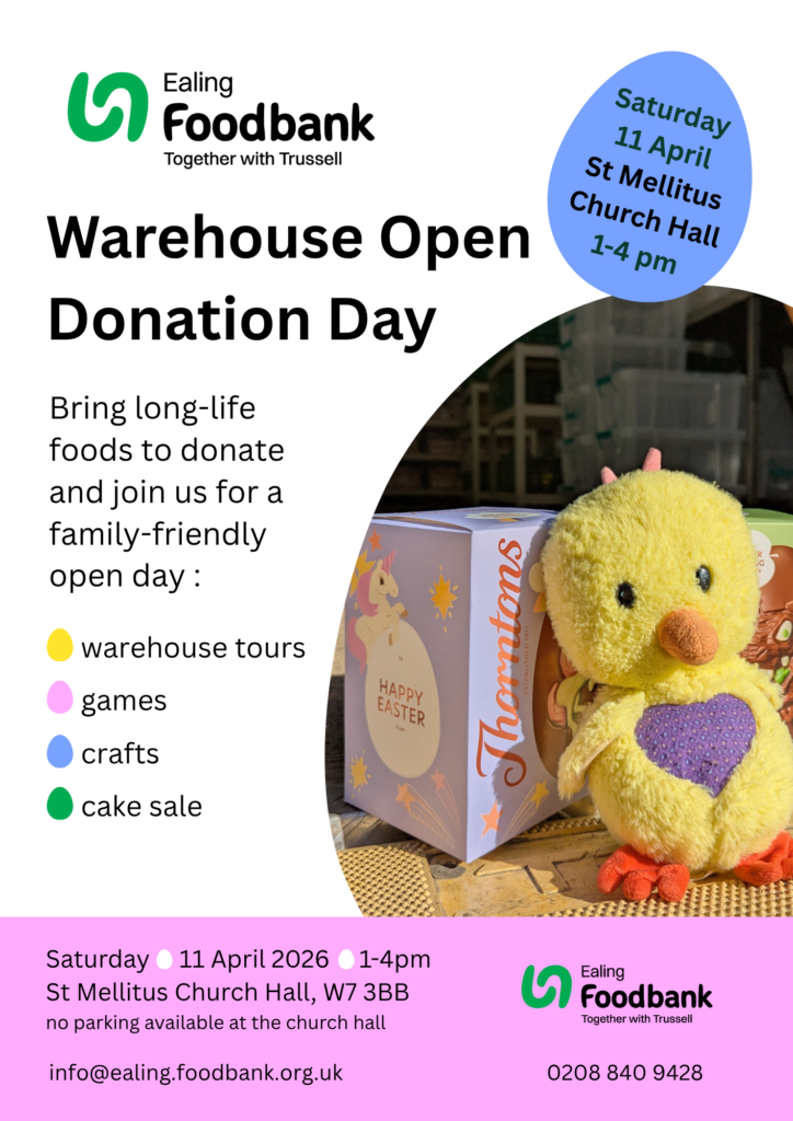 Join us at the warehouse for a behind the scenes tour of the inner workings of Ealing Foodbank and lots of family-friendly fun.